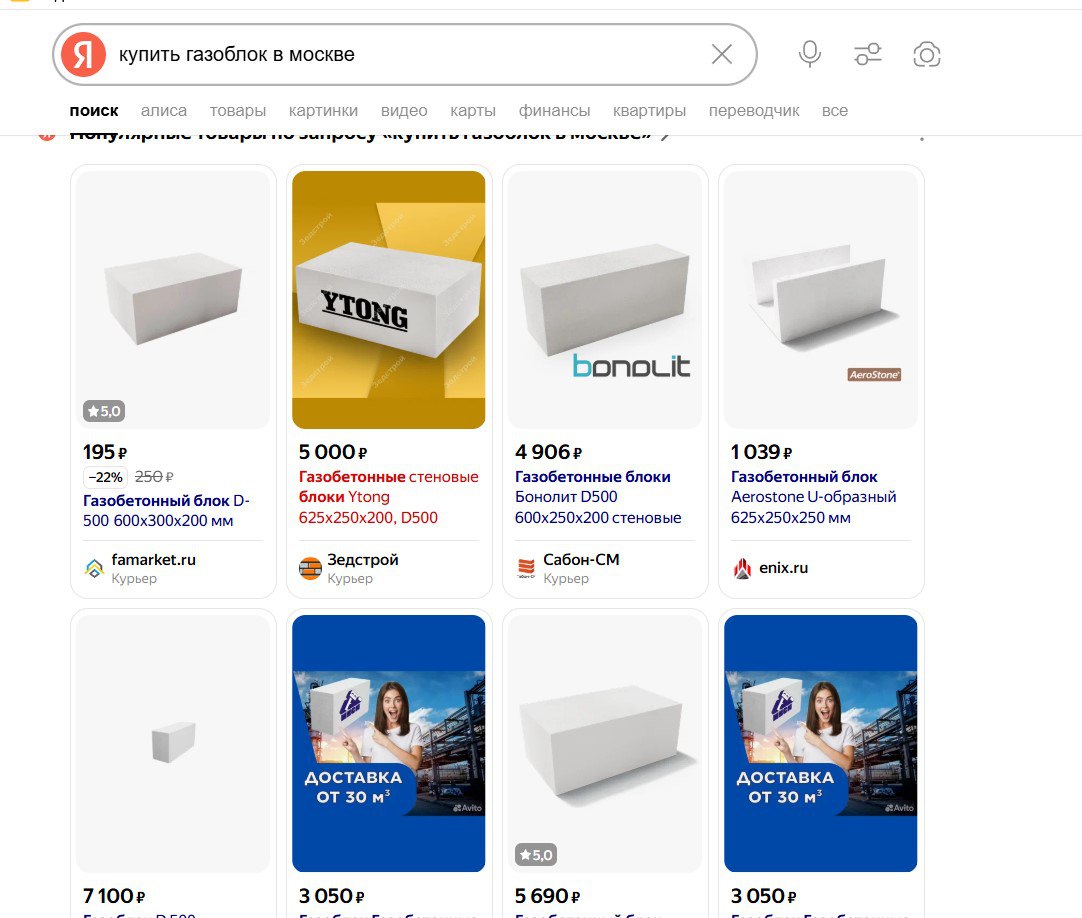 Смотрим скрин в качестве примера. Зачастую попасть наверх в товарные объявления в разы, даже в десятки раз дешевле, чем в первые строчки текстовых объявлений.